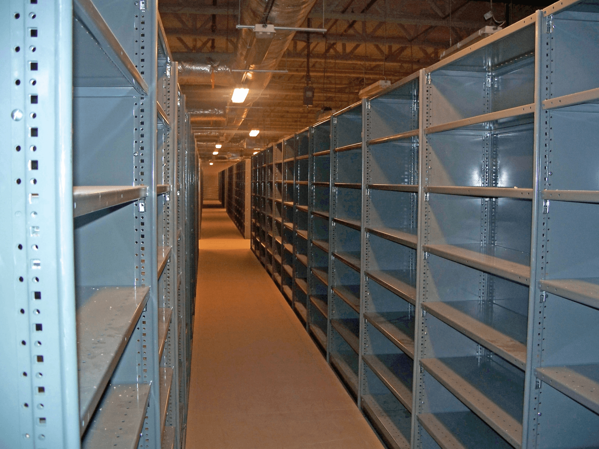 - Freestanding, unobstructed shelving that spans up to 8’.